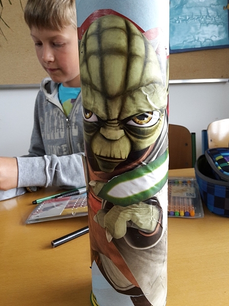 Sehr erstaunt waren die Schülerinnen und Schüler der dritten Klasse über die Materialien für den Bau der Musikinstrumente, denn die bestanden aus Flaschendeckeln, alten Textilspulen, Kronkorken, Papphülsen und Regranulat. Auch zum Verzieren der Instrumente wurden alte Kinderzeitschriften verwendet.So entstanden aus „Müll“ tolle Instrumente, die die Klassenlehrerin Frau Gradel im Anschluss gleich auch noch im Musikunterricht einsetzte.