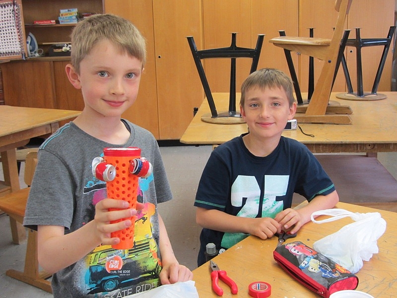 Die Motivation der Drittklässler war hoch und Sie bauten mit viel Eifer und Spaß an Ihren Instrumenten.