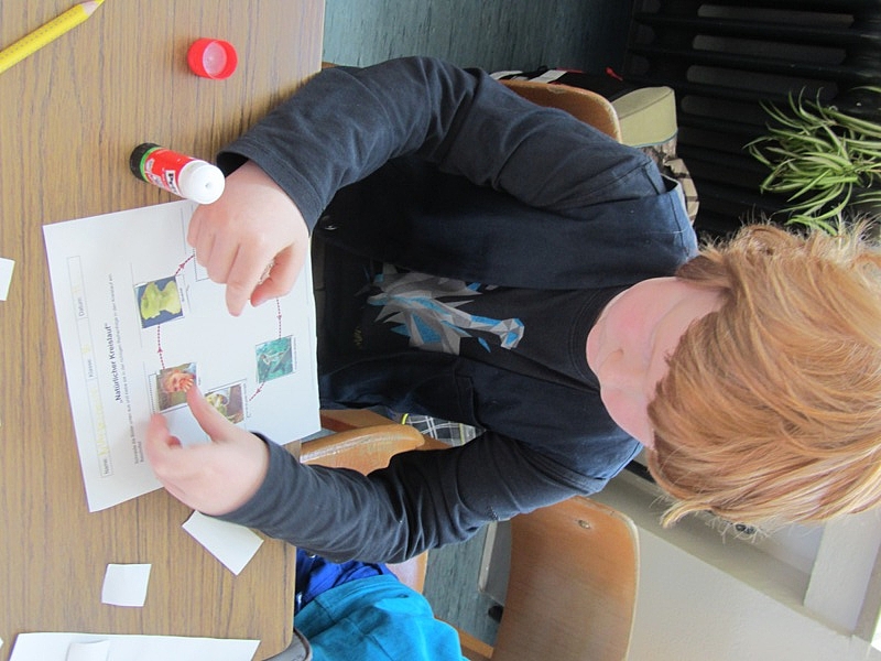 Beim Legespiel sollten die Schüler mehrere Bilder in die richtige Reihenfolge bringen. Am Ende wurde deutlich, dass es sich bei der Kompostierung um einen Kreislauf nach dem Vorbild der Natur handelt.