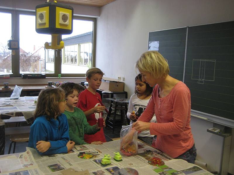 Die Fachlehrerin Frau Köhn-Pittroff hatte Frau Popp-Köhler vom Abfallzweckverband für die Klassen 3/4 a und 3/4 b eingeladen. Auch hier fertigten die Kinder mit viel Eifer und Genauigkeit tolle Kerzenuntersetzter für ihre selbstgemachten Sternenkerzen.