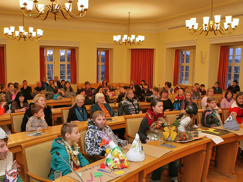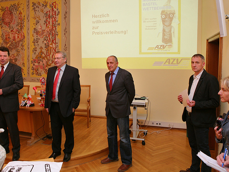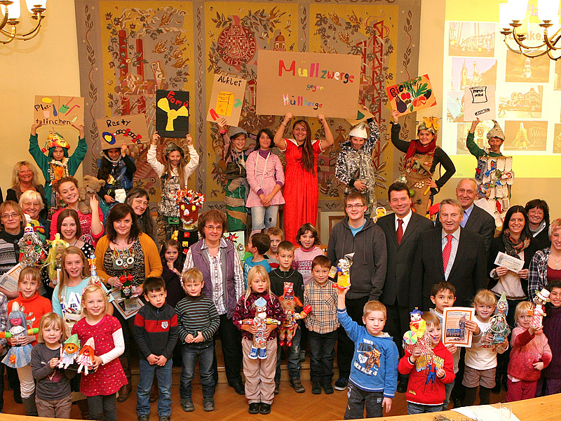 Zur Preisvergabe war der große Sitzungssaal des Hofer Rathauses prall gefüllt. Die Gewinner stellten ihren Zwerg vor und erzählten etwas über die Entstehung. Die Schüler der Ganztagesschule der Hofecker Mittelschule hatten keinen Müllzwerg gebastelt, sondern präsentierten sich selbst als Müllzwerge und gaben noch dazu einen Müll-Rap zum Besten.