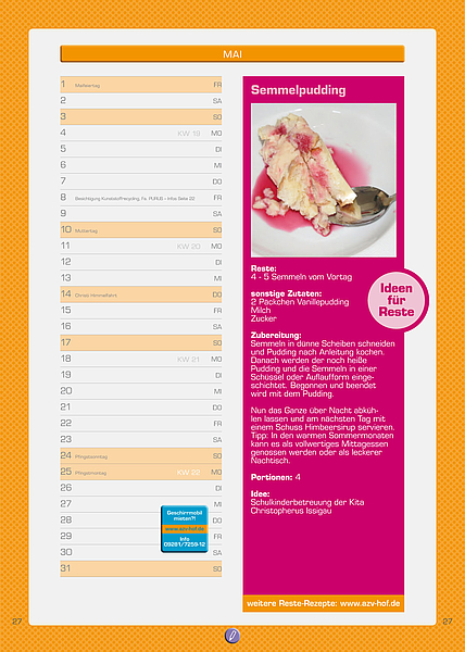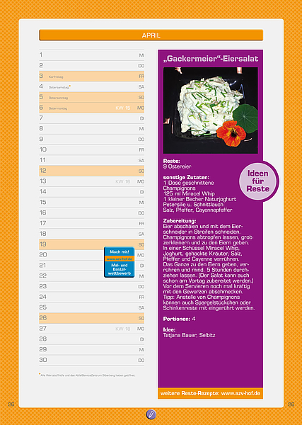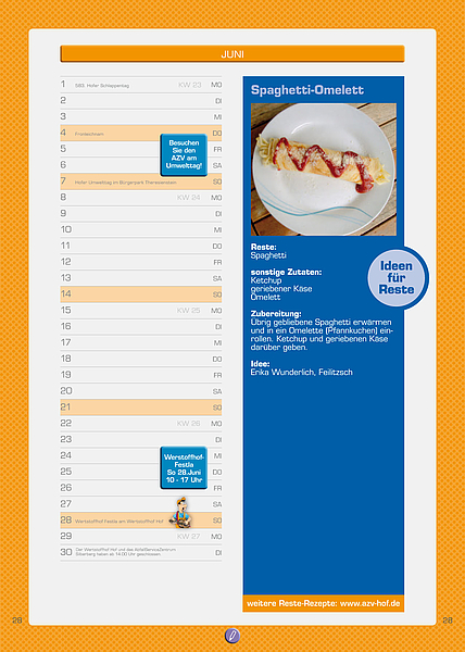 Laut Bundesministerium für Landwirtschaft und Ernährung wirft jeder Bürger pro Jahr durchschnittlich 82 Kilogramm Lebensmittel weg, das entspricht etwa zwei vollgepackten Einkaufswagen. Auf Deutschland hochgerechnet ergibt das einen gewaltigen Berg von 6,7 Millionen Tonnen. Um diesen Missstand entgegen zu wirken, war es Anlass für den Abfallzweckverband Hof, einen Reste-Rezepte-Wettbewerb ins Leben zu rufen. Einzelpersonen, Gruppen, Klassen, Schul- und Kitaküchen, Gastronomen und sonstige Kochbegeisterte waren aufgerufen Ihre besten Resteverwertungsideen einzusenden. Rund 40 Einrichtungen und Einzelpersonen sind diesem Aufruf nachgekommen und haben teils mehrere Vorschläge eingereicht. Eine Einsendung enthielt stattliche 60 Seiten handschriftlicher Rezepte.