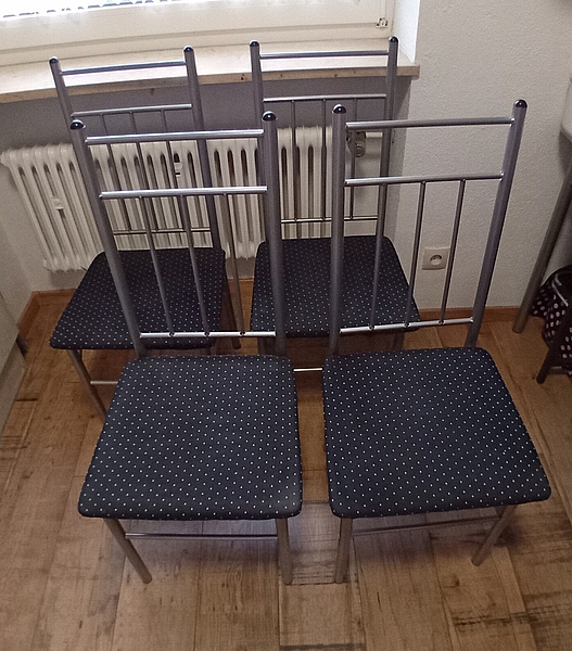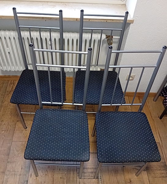 Habe 4 guterhaltene Metallstühle abzugeben. Zum tauschen hätte ich gerne einen Kasten Meinel Pils.