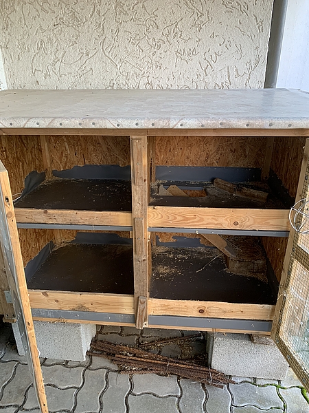 Massiver Hasenstall mit Durchgang unten und nach oben. Maße: 147cm x 103cm x 75cm Zum Tausch einen Kasten Huppendorfer Bier.