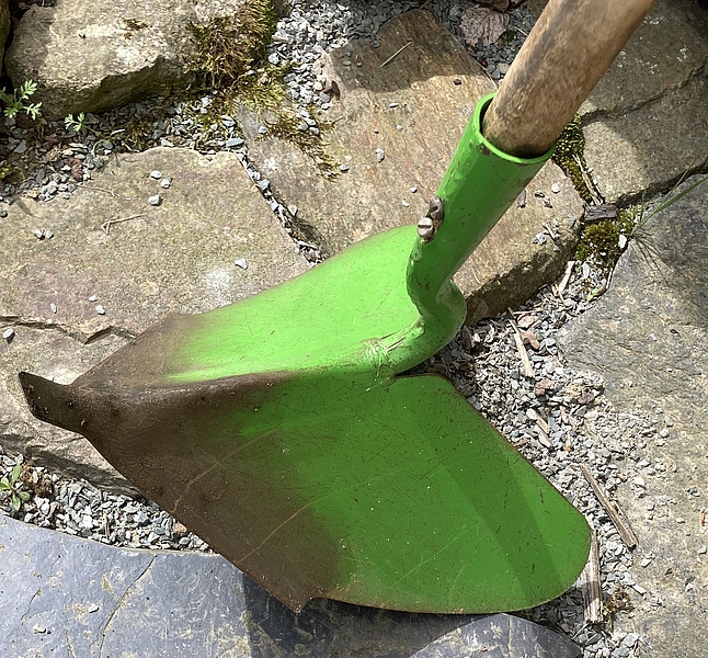 gebrauchte gartenharke mit Holzstiel zum Tauschen wäre dunkle Schokolade gut