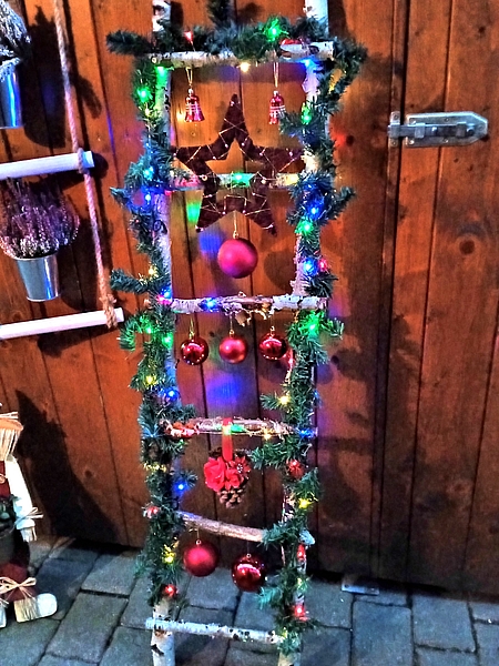 urig, rustikale Advents Deko, ca. 150 cm hoch , komplett dekoriert mit LED Lichterkette zum Tausch gg. 1 Kasten Helles