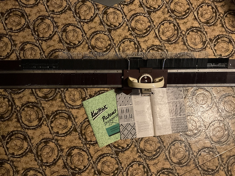 Strickmaschine, voll funktionsfähig, mit Zubehör zu verschenken