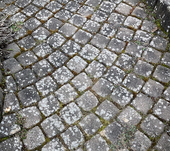 Ca. 25 qm ; 1 Stein: 11x11 cm, 6 cm hoch und ein paar höhere Randsteine