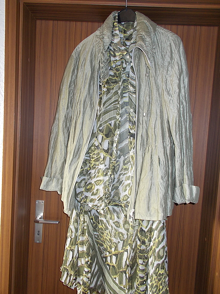 Ensemble von Hauber, grün gem., Rock, Top, Bluse, Jacke, Größe 46 gegen 1 K. Weizenbier