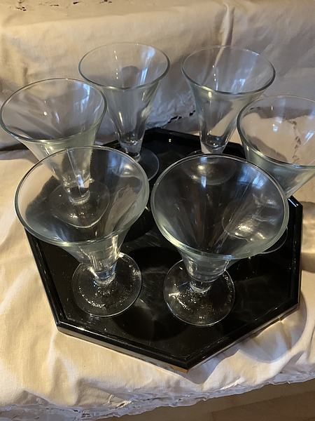 6 Stück mit schwarzen Tablett von Leonardo, unbenutzt, Nichtraucherhaushalt. Zum Tauschen gegen Kaffee oder was anderes.
