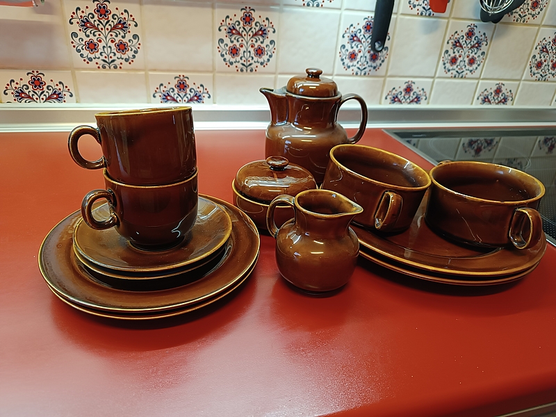 Eß- und Kaffeservice für 2 Personen, uni braun, spülmaschinenfest